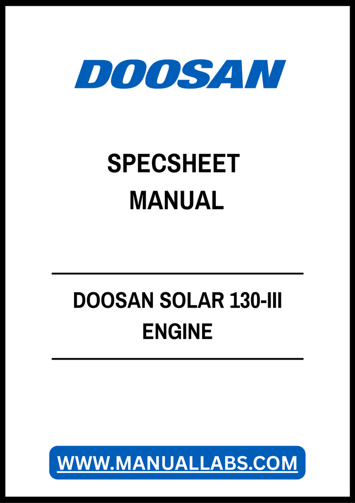 1. Discover the comprehensive DOOSAN SOLAR 130-III Engine Specsheet Manual, available in a convenient PDF format. This essential resource provides detailed specifications and insights into the performance and capabilities of the DOOSAN SOLAR 130-III, ensuring you have all the information you need at your fingertips.