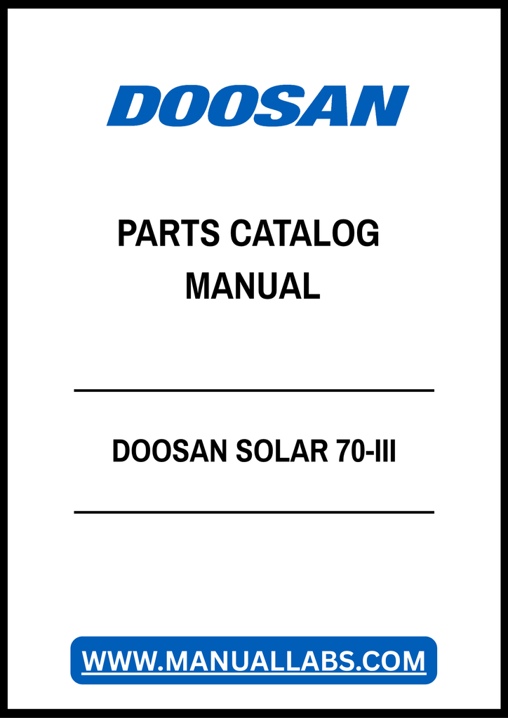 1. Discover the comprehensive DOOSAN SOLAR 70-III Parts Catalog Manual, now available in a convenient PDF format. This essential resource is designed for professionals and enthusiasts alike, providing detailed information on parts and components for the DOOSAN SOLAR 70-III excavator.