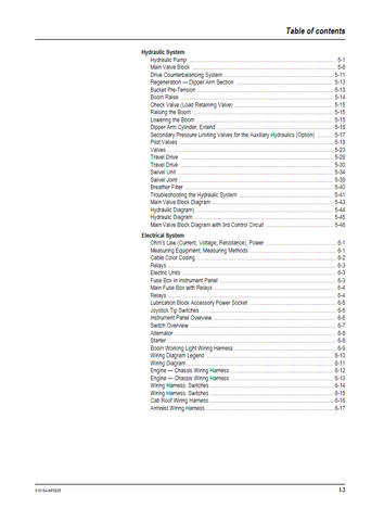 : The manual includes - Bookmarks, Searchable Text, Wiring, and Hydraulic Schematics