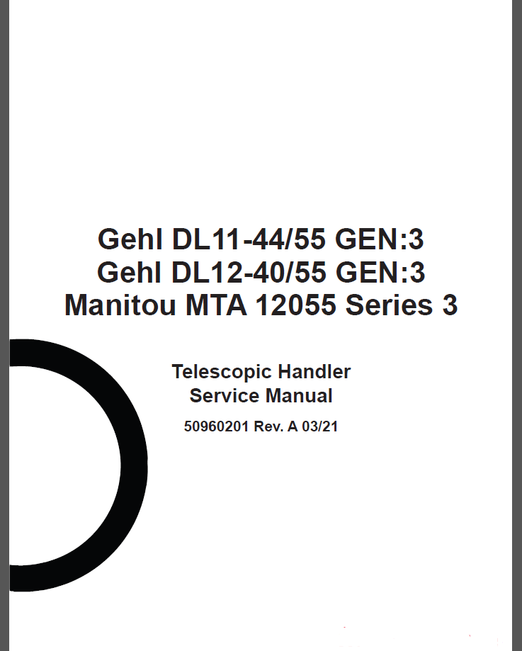 Gehl Telescopic Handler DL11-44/55, DL12-40/55 GEN: 3, Manitou MTA 12055 Series 3 Manual 50960201 03.2021 Service manual Contains repair, maintenance, safety, and service information Includes diagnostic, test, adjustment, and theory of operation information. Factory service manuals (FSM) are the manuals provided by manufacturers which cover the servicing, maintenance, and repair of the products. so that the mechanics able to fix their own products. It is a must-have resource for any Gehl Telescopic Handler user, providing in-depth technical and repair information to extend the life of the equipment. It is also a valuable resource for effective troubleshooting and repair of the machines.