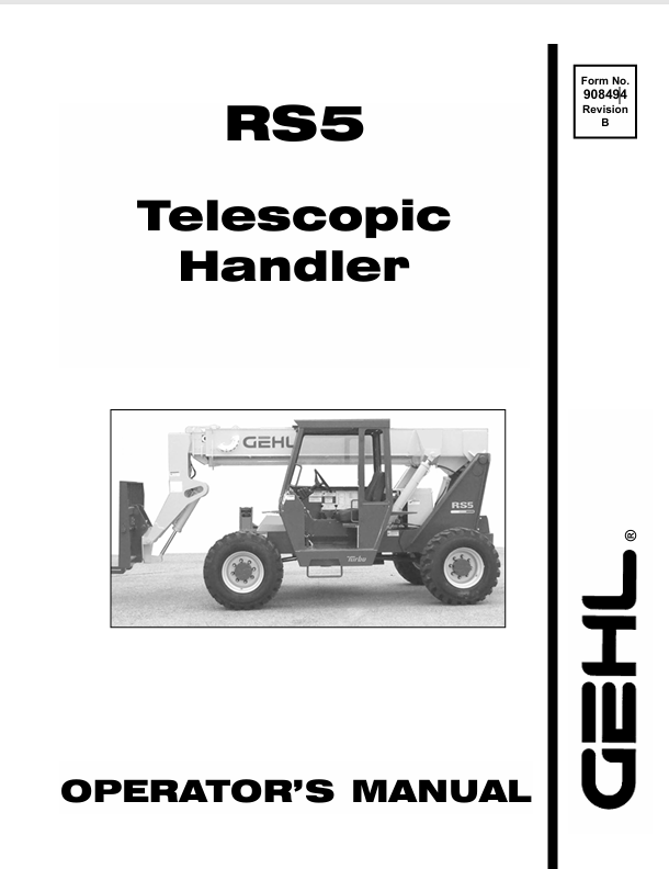 1. Discover the essential GEHL RS5 Operator Manual (908494B) in a convenient PDF format, designed to enhance your operational efficiency. This comprehensive guide provides detailed instructions and insights tailored specifically for the GEHL RS5, ensuring you have all the information you need at your fingertips.