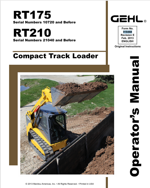 1. Unlock the full potential of your GEHL RT175 and RT210 Compact Track Loaders with our comprehensive Operator Manual PDF download. This essential guide is designed to provide you with all the information you need to operate your machinery safely and efficiently, ensuring optimal performance on every job site.