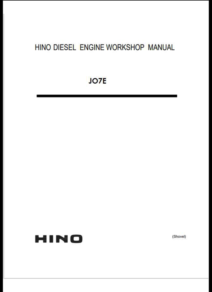 • Download PDF For Hino JO8E Diesel Engine Service Repair Manual This service repair manual is designed to provide comprehensive service and repair information to help you maximize the performance of your Hino JO7E Diesel Engine.