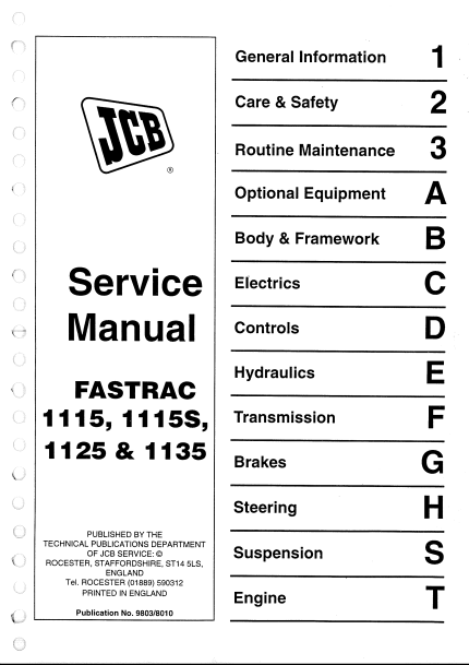 JCB 1115, 1115S, 1125, 1135 FASTRAC Workshop Service Repair Manual
