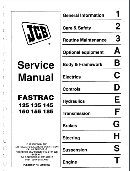 JCB 125, 135, 145, 150, 155, 185 Fastrac Service Repair Manual