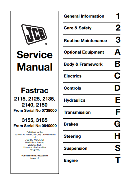 JCB 2115, 2125, 2135, 2140, 2150, 3155, 3185 FASTRAC Service Repair Manual