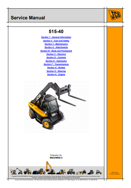 JCB 515-40 Telescopic Handler Workshop Service Repair Manual 1627500-1628499