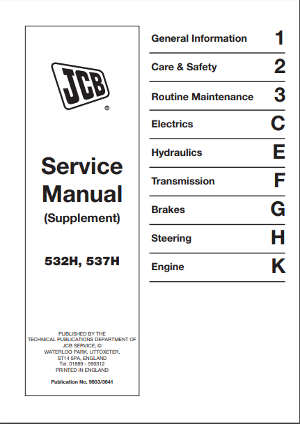 JCB 532H, 537H Telescopic Handler Service Repair Manual