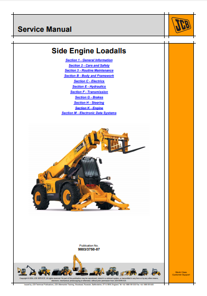 JCB 540-170, 540-140, 535-125 Hi Viz, 535-140 Hi Viz Telescopic Handler Service Repair Manual 9803/3750-07