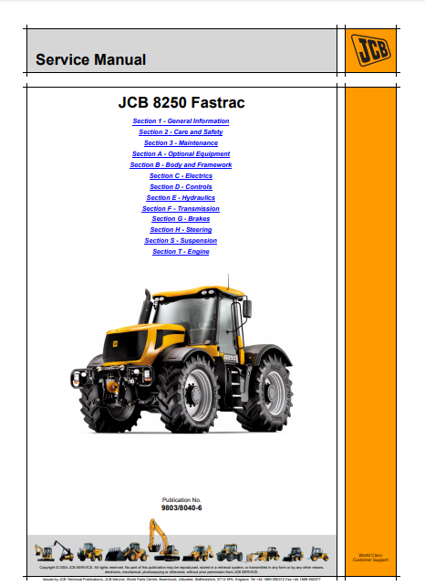 JCB 8250 Fastrac Workshop Service Repair Manual SN:01138001-01138360