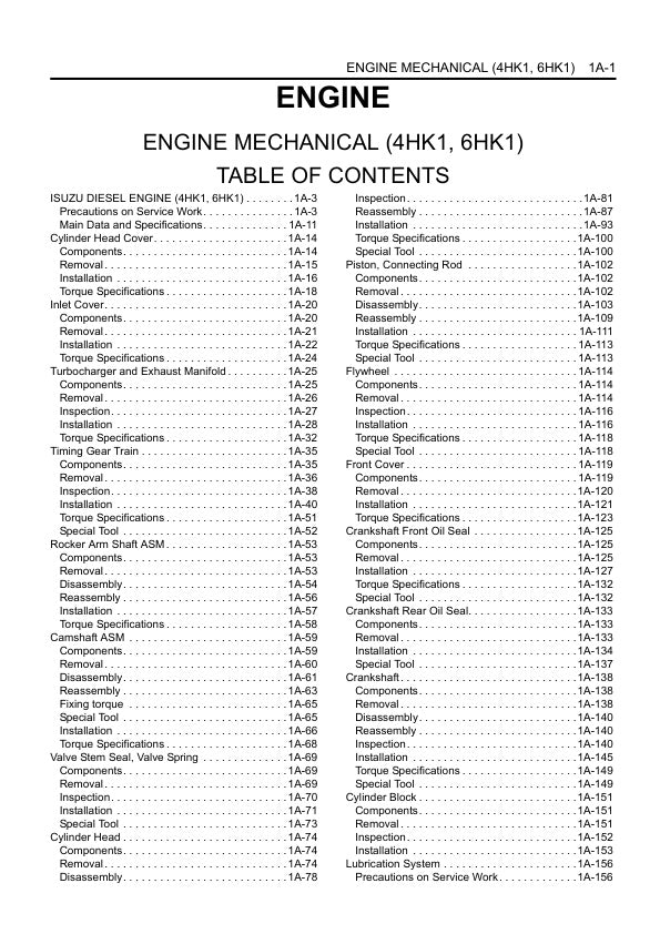 DOWNLOAD COMPLETE PDF FOR JCB ISUZU ENGINE (4HK1, 6HK1) SERVICE MANUAL