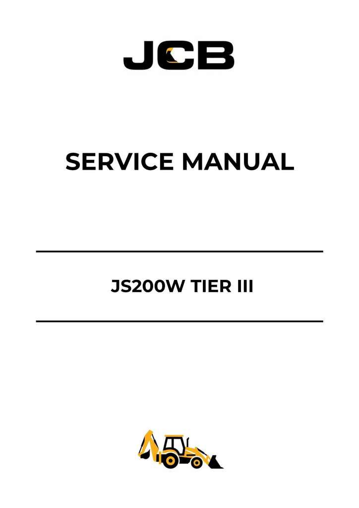1. Access the JCB JS200W Tier III Service Manual (98039540-6) in PDF format. Get expert guidance for maintenance and repairs to keep your machine running smoothly.