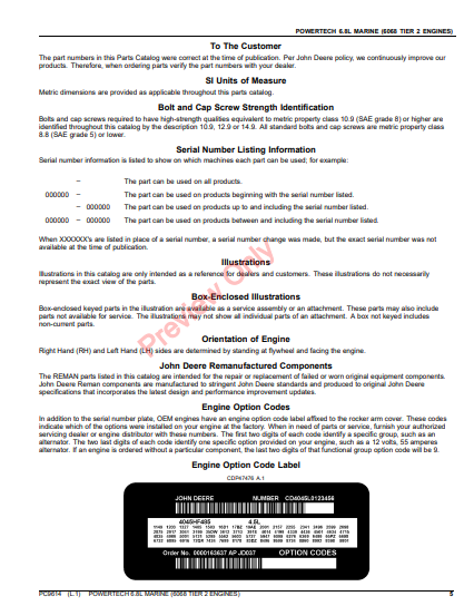 DOWNLOAD COMPLETE PARTS CATALOGUE MANUAL FOR JOHN DEERE POWERTECH 6.8L 6068SFM75 MARINE ENGINE (60688 TIER 2 ENGINES) | PUBLICATION NUMBER - PC9614 (21-NOV-24)