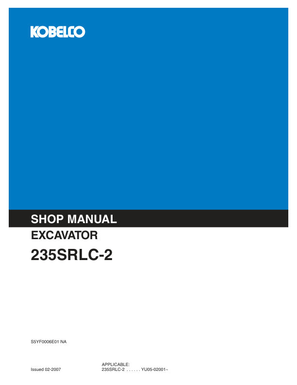 1. Unlock the full potential of your KOBELCO 235SRLC-2 Excavator with the comprehensive Service Manual S5YF0006E01. This PDF guide is meticulously designed to provide you with detailed insights into maintenance, troubleshooting, and repair procedures, ensuring your machine operates at peak performance.