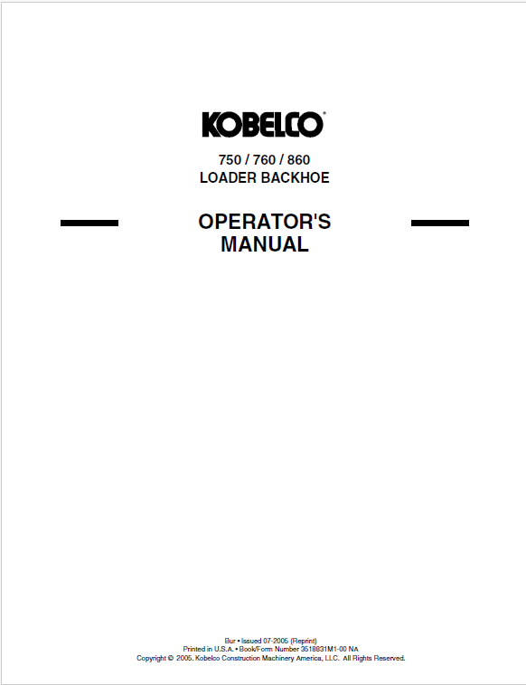 1. Download the operator manual PDF for KOBELCO 750, 760, and 860 loader backhoes. Access essential information for efficient operation and maintenance.