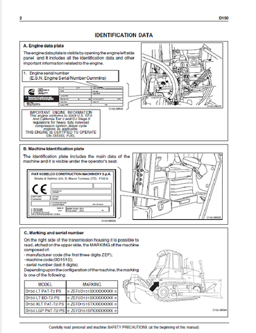 2. Get your KOBELCO Bulldozer D150 (Tier 2) Operator Manual in PDF. Download now for comprehensive guidance on operation and maintenance procedures.