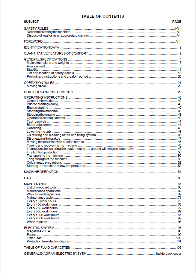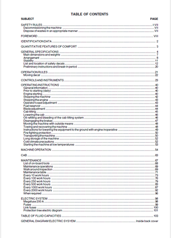 OPERATOR MANUAL CONTENTS :