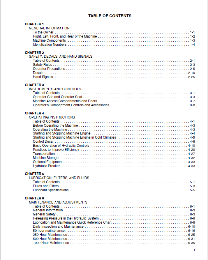 OPERATOR MANUAL CONTENTS :