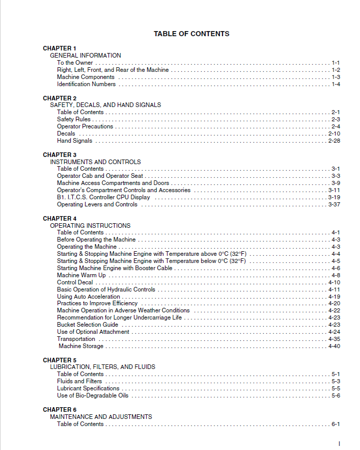 OPERATOR MANUAL CONTENTS :