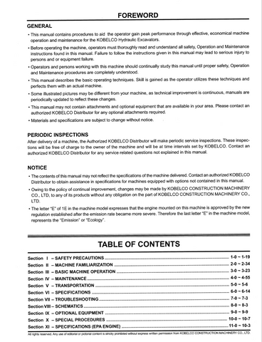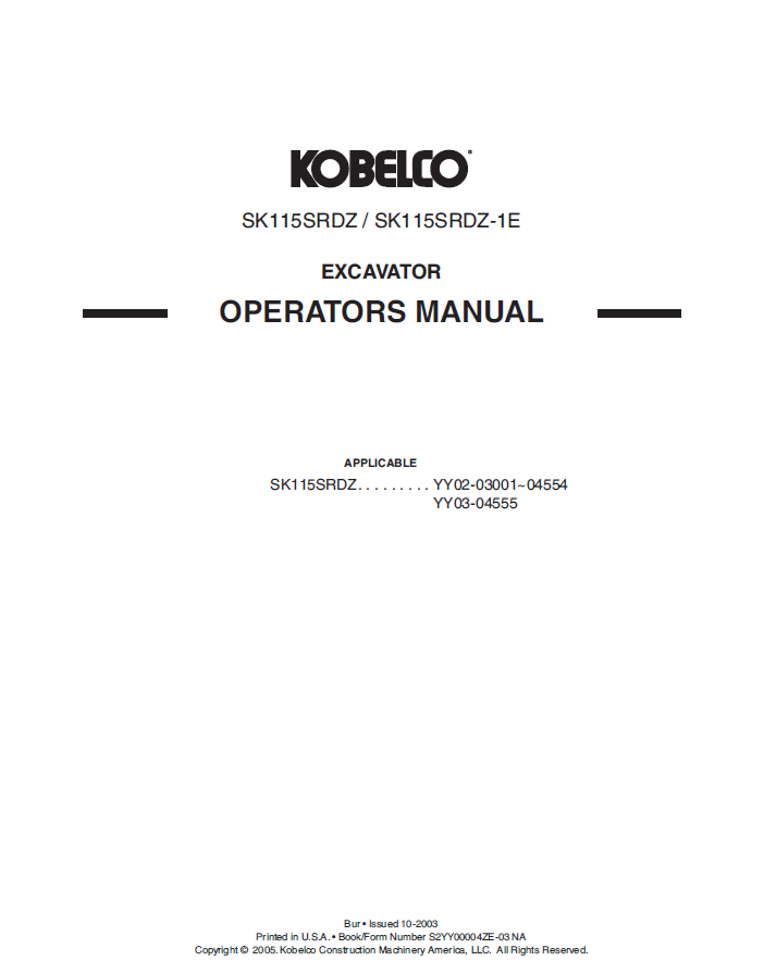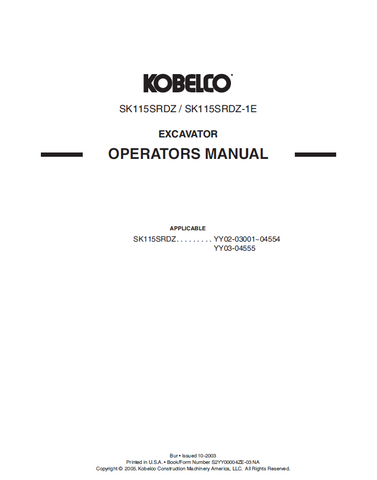 1. Discover the comprehensive operator manual for the Kobelco Excavator SK115SRDZ and SK115SRDZ-1E. Enhance your operational efficiency with expert guidance.