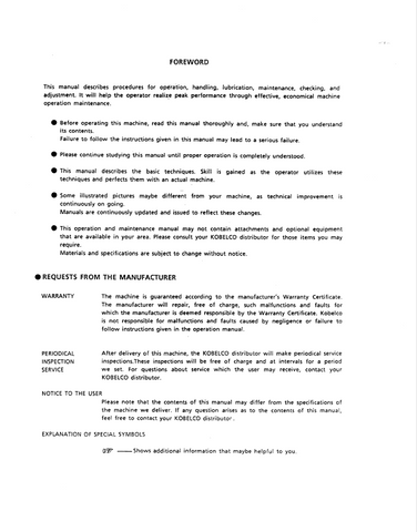 1. Discover the comprehensive KOBELCO Excavator SK400 III and SK400LC III operator manual. Enhance your operational skills and ensure optimal performance today.