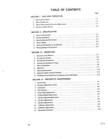 OPERATOR MANUAL CONTENTS: