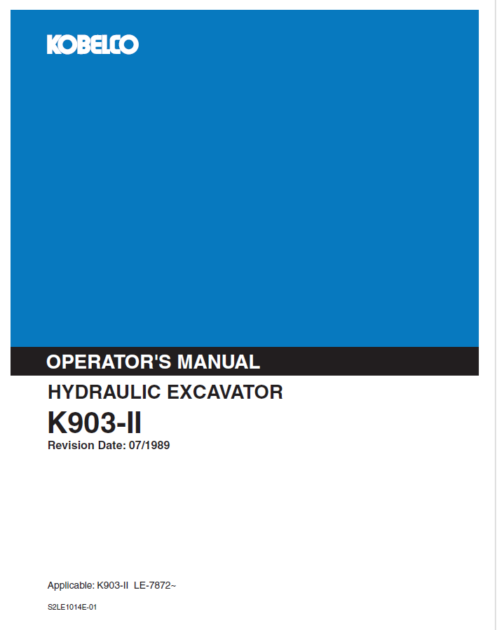 1. Discover the KOBELCO Hydraulic Excavator K903-II Operator Manual. Access essential guidelines and tips for optimal operation and maintenance of your excavator.2. Explore the KOBELCO Hydraulic Excavator K903-II Operator Manual. Find comprehensive instructions and best practices to enhance your excavator's performance.3. Access the KOBELCO Hydraulic Excavator K903-II Operator Manual for detailed operational guidance. Ensure safety and efficiency in your excavation projects today.4. Get the KOBELCO Hydraulic Excavator K903-II Operator Manual. This resource provides crucial information for effective operation and maintenance of your equipment.5. Uncover the KOBELCO Hydraulic Excavator K903-II Operator Manual. Equip yourself with vital knowledge for safe and efficient excavator operation and upkeep.