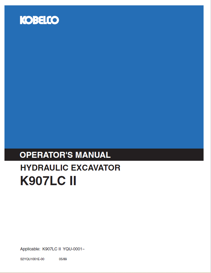 1. Discover the KOBELCO Hydraulic Excavator K907LC II Operator Manual. Access essential guidelines and tips for optimal operation and maintenance of your excavator.