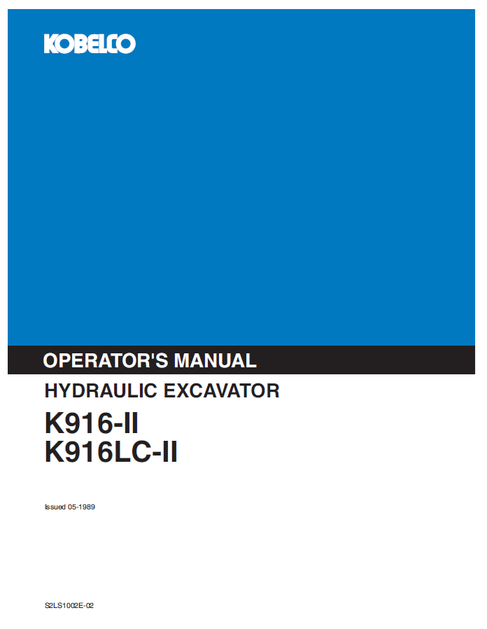1. Discover the comprehensive operator manual for KOBELCO Hydraulic Excavator K916-II and K916LC-II. Enhance your operational efficiency with expert guidance.