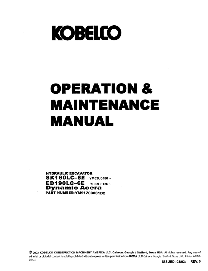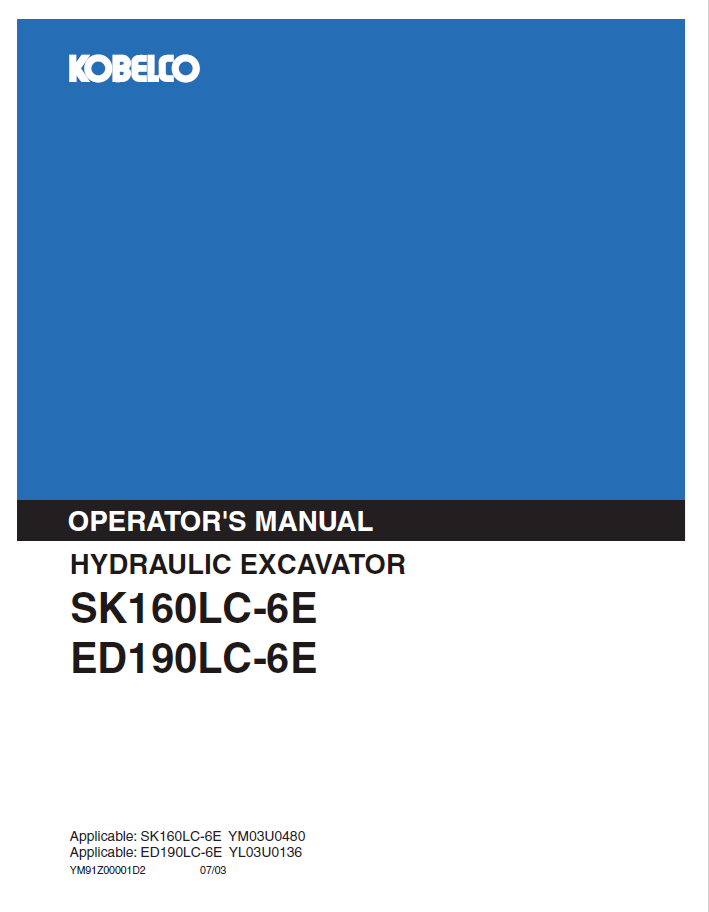 1. Discover the comprehensive operator manual for KOBELCO hydraulic excavators SK160LC-6E and ED190LC-6E. Enhance your operational efficiency today.