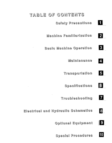 OPERATOR MANUAL CONTENTS: