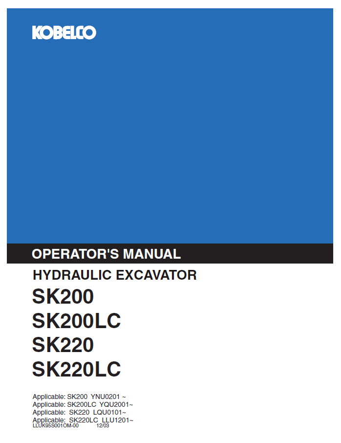 1. Discover the comprehensive operator manual for KOBELCO hydraulic excavators SK200, SK200LC, SK220, and SK220LC. Enhance your operational efficiency today.