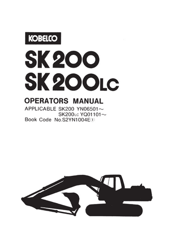 1. Discover the comprehensive operator manual for KOBELCO Hydraulic Excavator SK200 SK200LC (YN_YQ). Enhance your operational skills and ensure optimal performance.
