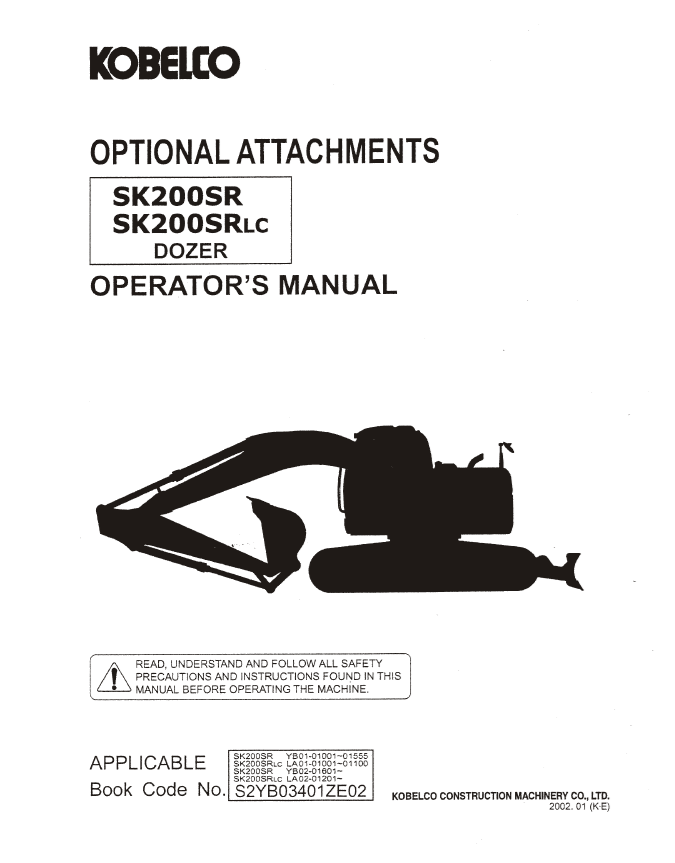 APPLICABLE NO. SK200SR YB01-01001 01555, YB02-01201