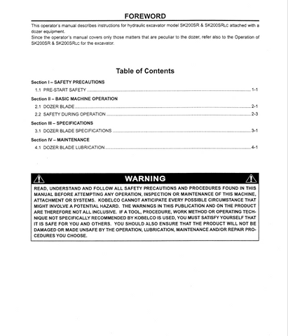 1. Discover the comprehensive operator manual for KOBELCO Hydraulic Excavator SK200SR III and SK200SRLC III. Enhance your operational efficiency today.