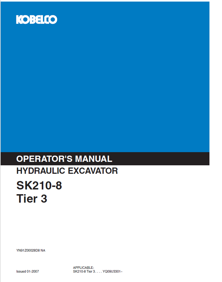1. Discover the KOBELCO SK210-8 Tier 3 Operator Manual. Access essential guidelines and tips for optimal performance and maintenance of your hydraulic excavator.
