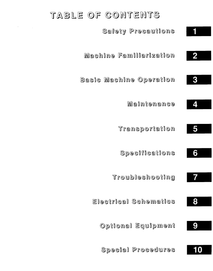 OPERATOR MANUAL CONTENTS: