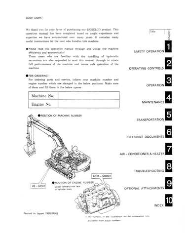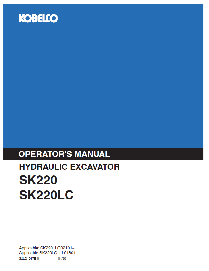 1. Discover the comprehensive operator manual for KOBELCO Hydraulic Excavator SK220 SK220LC (II). Enhance your operational efficiency with expert guidance.