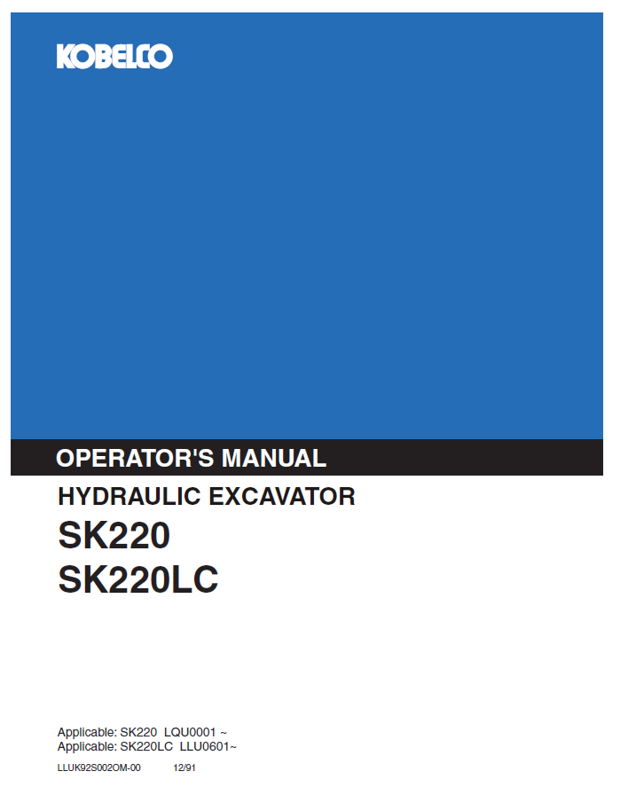 1. Discover the comprehensive operator manual for KOBELCO Hydraulic Excavator SK220 and SK220LC. Enhance your operational efficiency with expert guidance.