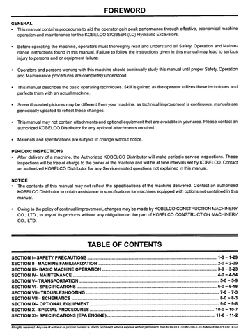 1. Discover the comprehensive operator manual for KOBELCO Hydraulic Excavator SK235SR and SK235SRLC (II). Enhance your operational efficiency today.