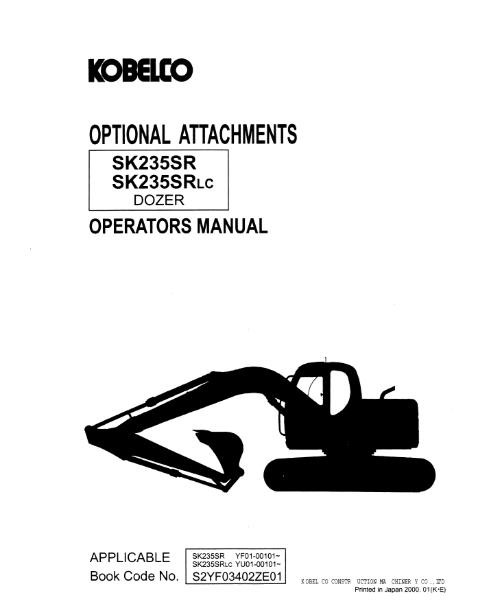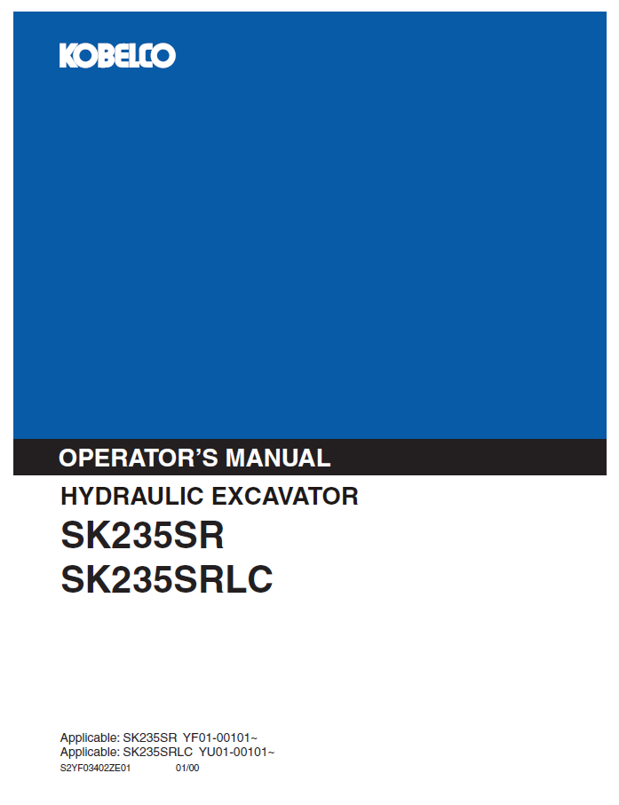 1. Discover the comprehensive operator manual for KOBELCO Hydraulic Excavator SK235SR and SK235SRLC. Enhance your operational efficiency and safety today.