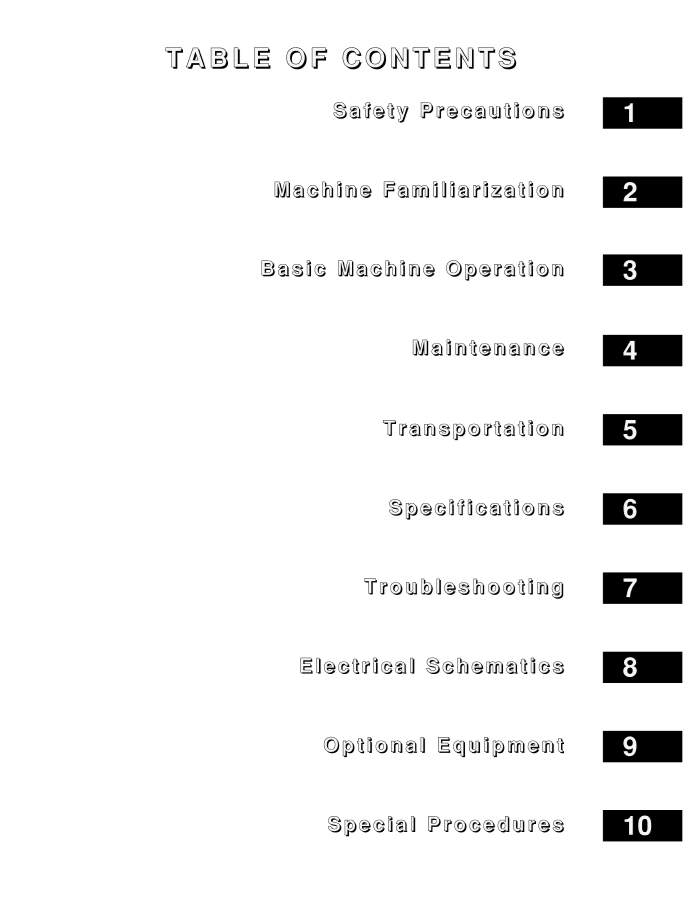OPERATOR MANUAL CONTENTS:
