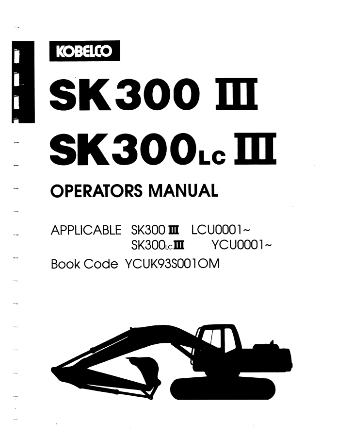 1. Discover the comprehensive operator manual for KOBELCO Hydraulic Excavator SK300 III and SK300LC III. Enhance your operational efficiency and safety today.