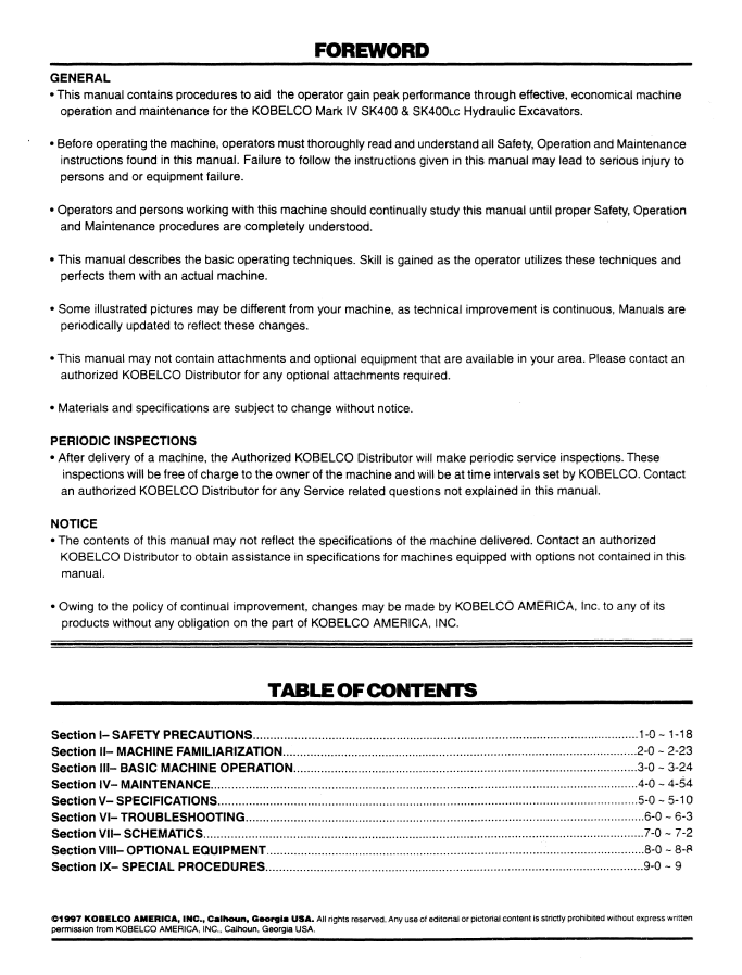 1. Discover the comprehensive operator manual for KOBELCO Hydraulic Excavator SK400 IV and SK400LC IV. Enhance your operational efficiency with expert guidance.