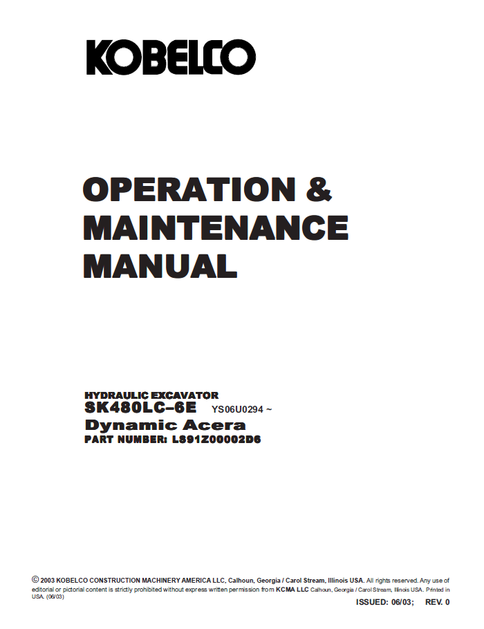 Discover the KOBELCO SK480LC-6E Hydraulic Excavator Operator Manual. Access essential guidelines and tips for optimal operation and maintenance.
