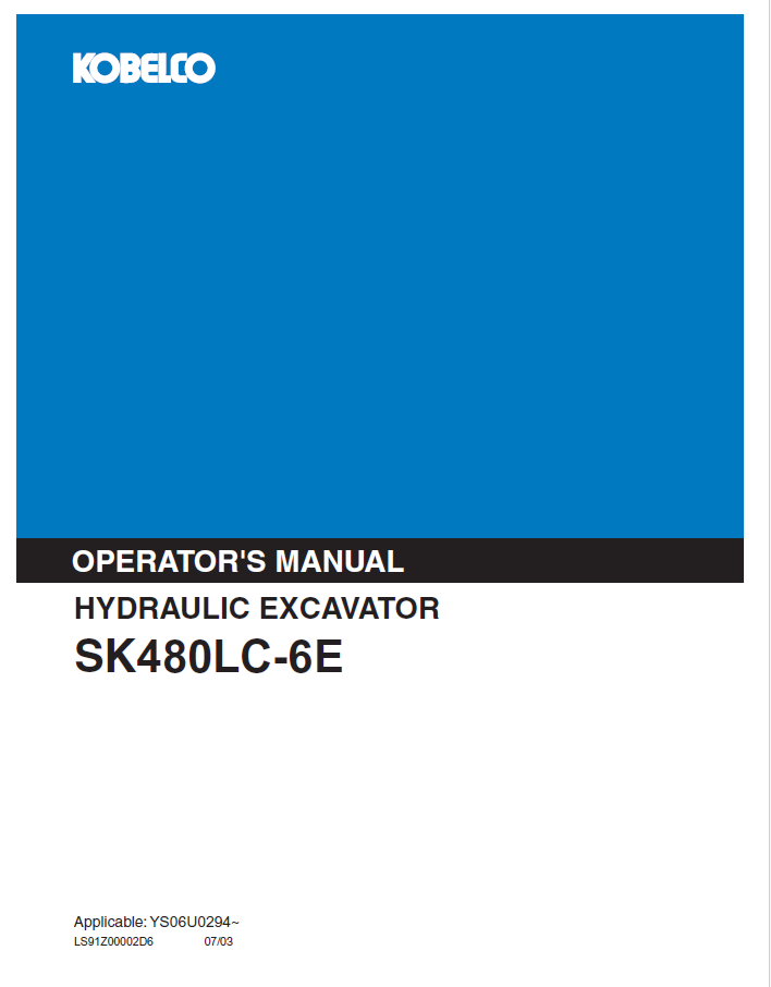 DOWNLOAD COMPLETE PDF OPERATOR MANUAL FOR KOBELCO HYDRAULIC EXCAVATOR SK480LC-6E