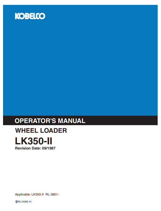 1. Unlock the full potential of your KOBELCO LK350-II Wheel Loader with the comprehensive Operator Manual (S2RL1006E-01) available in PDF format. This essential guide is designed to provide you with detailed instructions and insights, ensuring you operate your equipment safely and efficiently.