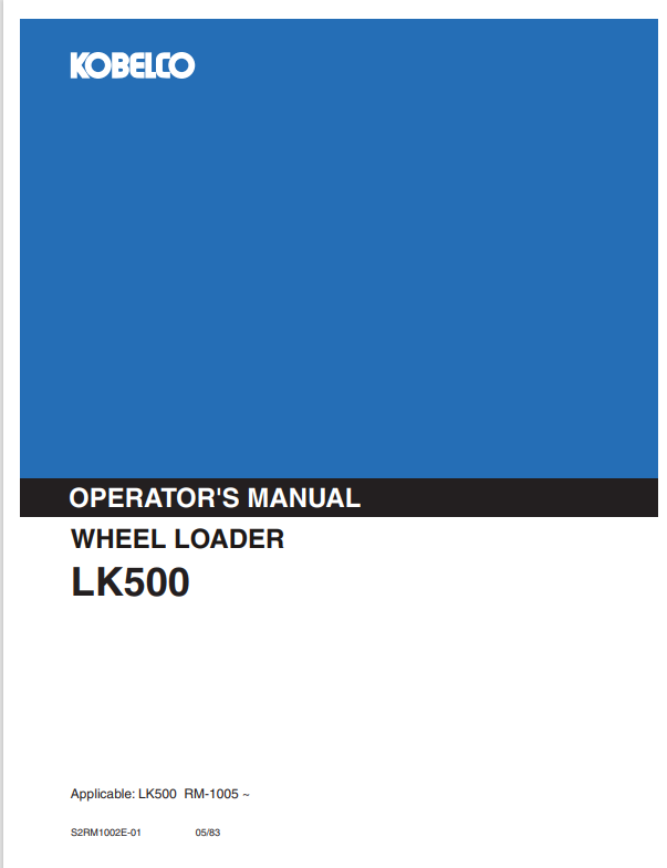 1. Unlock the full potential of your KOBELCO LK500 Wheel Loader with the comprehensive Operator Manual (S2RM1002E-01) in PDF format. This essential guide provides detailed instructions and insights to ensure optimal performance and maintenance of your equipment.