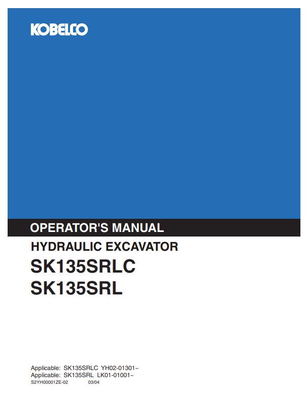 1. Unlock the full potential of your KOBELCO SK135SRLC and SK135SRL hydraulic excavator with the comprehensive Operator Manual (S2YH00001ZE-02) in PDF format. This essential guide provides detailed instructions and insights to ensure optimal performance and maintenance of your machine.