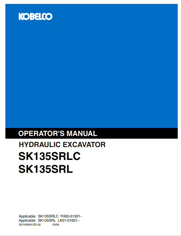 1. Unlock the full potential of your KOBELCO SK135SRLC and SK135SRL Hydraulic Excavator with the comprehensive Operator Manual (S2YH00001ZE-02) available in PDF format. This essential guide is designed to provide you with all the necessary information to operate your excavator safely and efficiently, ensuring optimal performance on every job site.